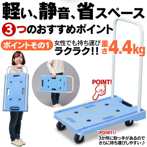 【ポイント5倍〜6日23:59迄】台車 折りたたみ 軽量 100kg送料無料 静音 荷台サイズ 38.5×60cm 耐荷重100kg キャリーカート キャスター 手押し台車 折り畳み 荷台車 平台車 黒 青 桃 家庭用 業務用 店舗 会社 オフィス 書類 ブラック ブルー ピンク おしゃれ